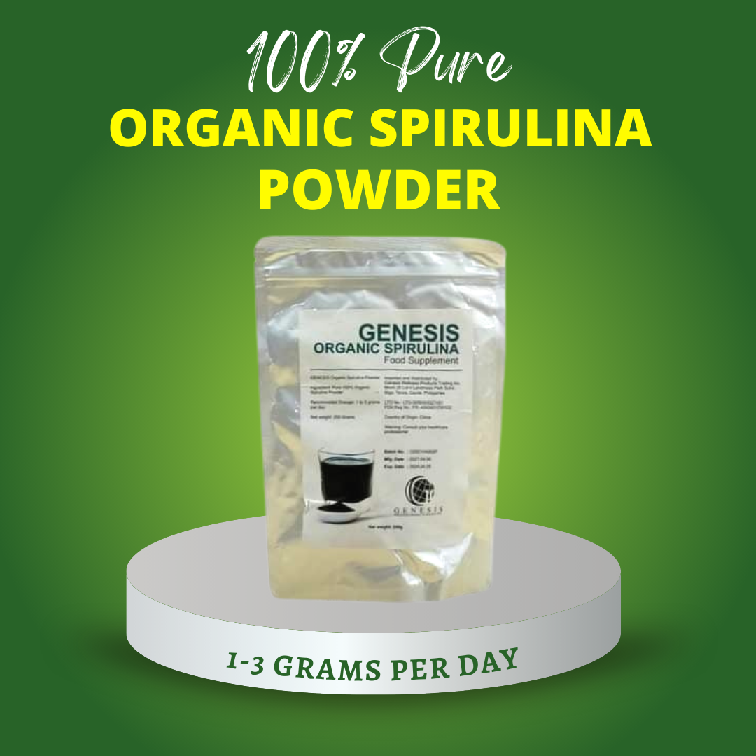 THE BEST AND HIGH QUALITY SPIRULINA proven and tested,marami ng natulungan!! Kaya naman, para sa matibay na katawan, piliin ang tatak natural! Genesis Organic Spirulina lang yan!